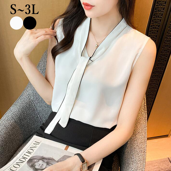 ブラウスレディース夏シフォン大きいサイズノースリーブタンクトップボウタイリボンインナー トップス シンプルフォマール通勤OLSML2L3L