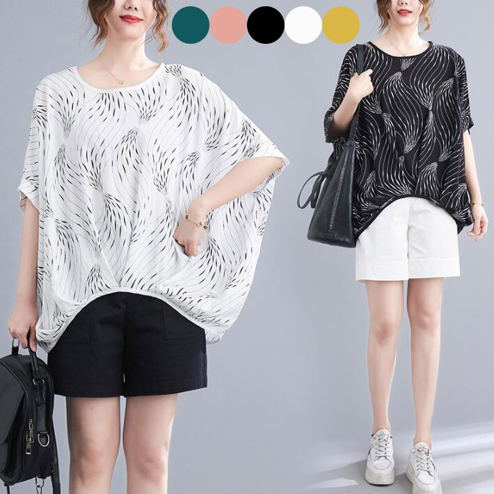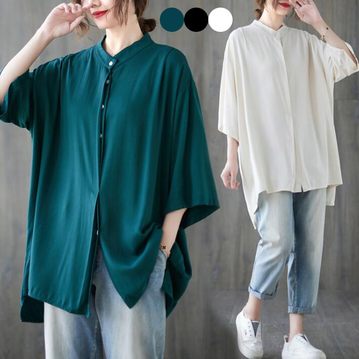 ブラウスレディースシャツドルマンフィッシュテール前後差 ロング トップス5分袖半袖 大きめカジュアル夏