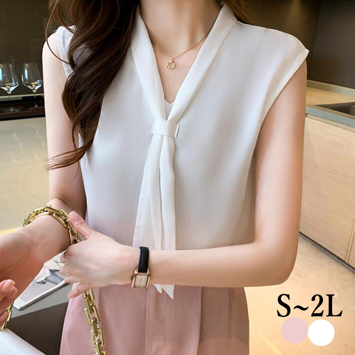 ブラウスレディース夏シフォン大きいサイズノースリーブタンクトップボウタイリボンインナー トップス シンプルフォマール通勤23