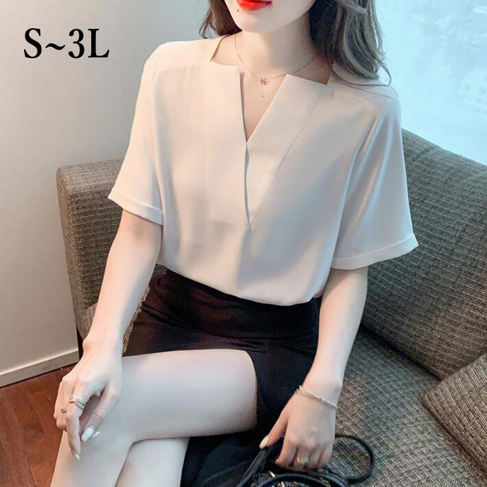 ブラウスレディース夏半袖 大きいサイズシャツ シフォンスクエアネックVネックシンプルトップスオフィスフォマール通勤 おしゃれ S M LLL3L