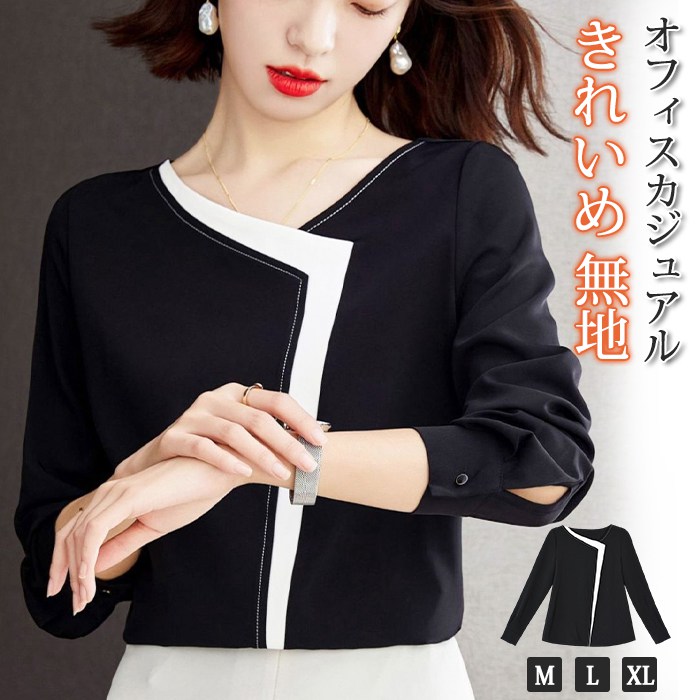 ブラウス レディース トップス シャツ 春 秋 無地 きれいめ エレガント 上品 気品 オフィスカジュアル 食事会 同窓会 デイリー モノトーン ブラック リラックス シンプル