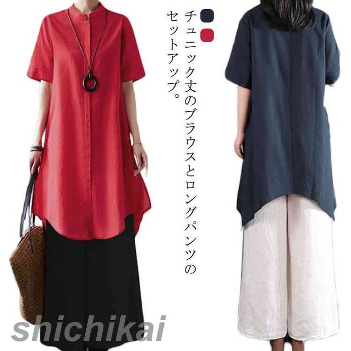 ブラウス チュニック 長ズボン セットアップ レディース カジュアレディースファッション トップス シャツ ブラウス