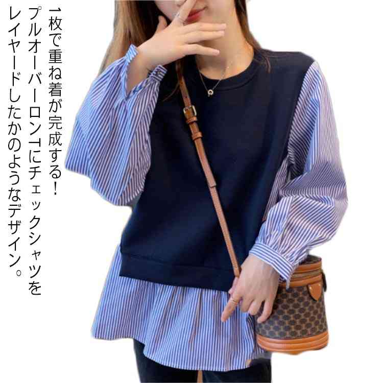 着こなせ プルオーバー カジュアル 切り替え 長袖 シャツ オシャレ きれい レイヤード プルオーバー 学生 春物