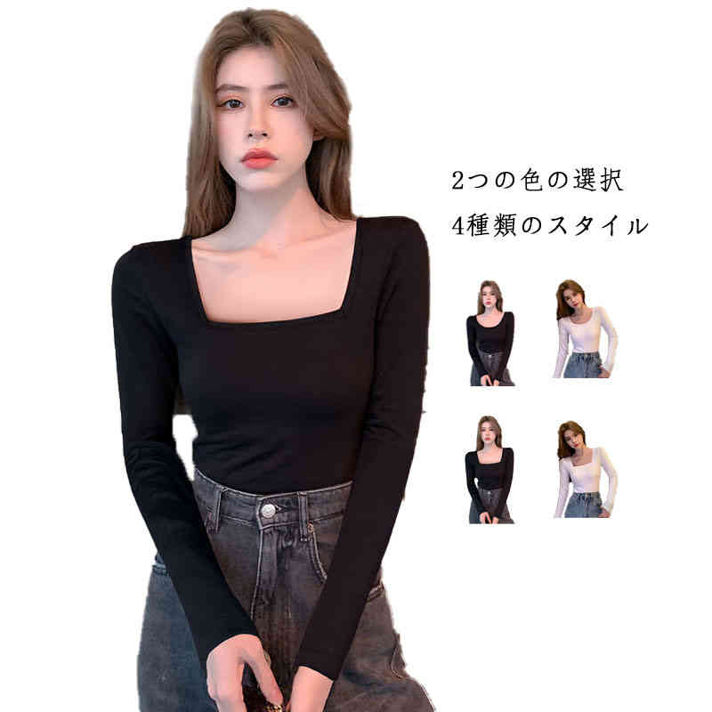 インナーカットソー インナーシャツ スクエアネック Uネック インナー 長袖 Tシャツ 大きいサイズ スリム フィット インナー