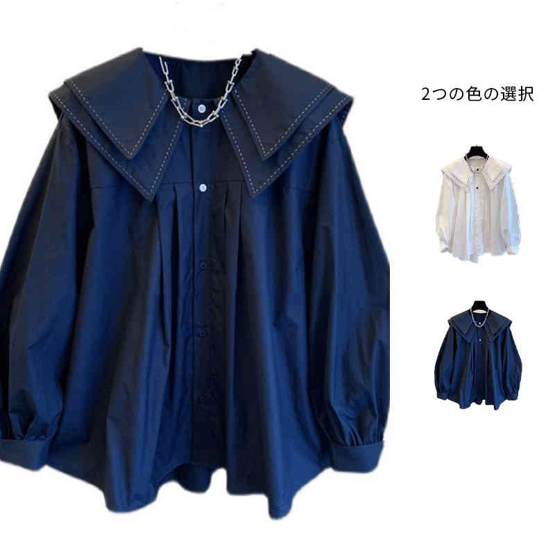 セーラーシャツ トップス 体型カバー 大きめ襟シャツ レディース 長袖シャツ ブラウス セーラー ビッグ襟 シャツブラウス ゆったり