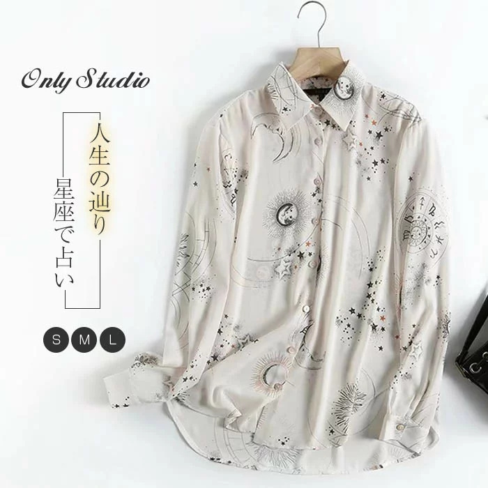 おしゃれ シャツ トップス 長袖 総柄 星柄 星座 カジュアル レディースファッション スタンダールカラー おしゃれ かわいい 春 夏 レディースシャツ シンプル