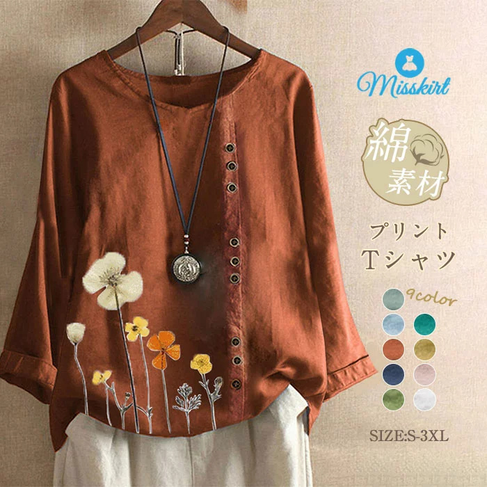 おしゃれ ブラウス シャツ 綿 花柄 tシャツ ナチュラル シンプル トップス プリント きれいめ カジュアル レディース 春服 夏服 可愛い 半袖