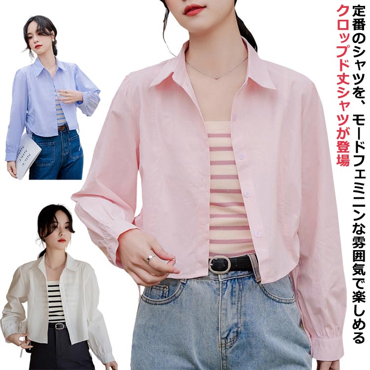 シャツ ブラウス レディース 長袖シャツ ショート丈 カジュアルシャツ 春夏 ボタレディースファッション トップス シャツ ブラウス