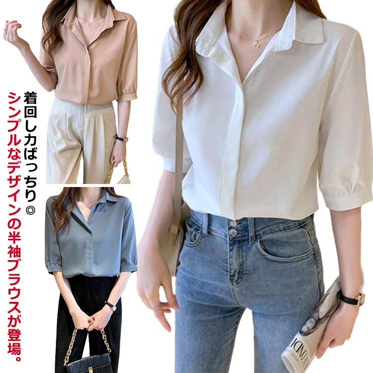 ブラウス レディース トップス シャツ 前開き 五分袖 フォーマル ワイシャツ シフレディースファッション トップス シャツ ブラウス