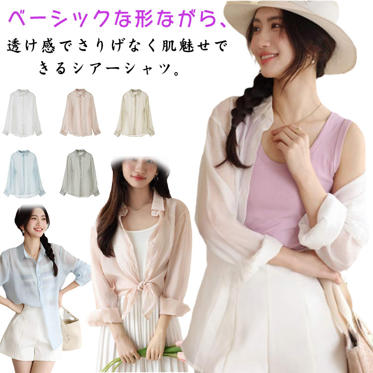 透け感 レディース シアーシャツ 薄手 ブラウス 長袖 カーディガン 羽織りレディースファッション トップス シャツ ブラウス