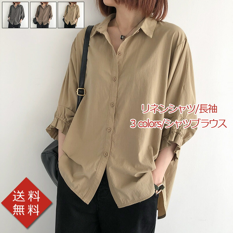 リネンシャツ シャツ レディース リネン シャツブラウス 長袖 前開き 無地 着痩せ 大きいサイズ トップス 綿麻 カジュアル 春秋 きれいめ オシャレ