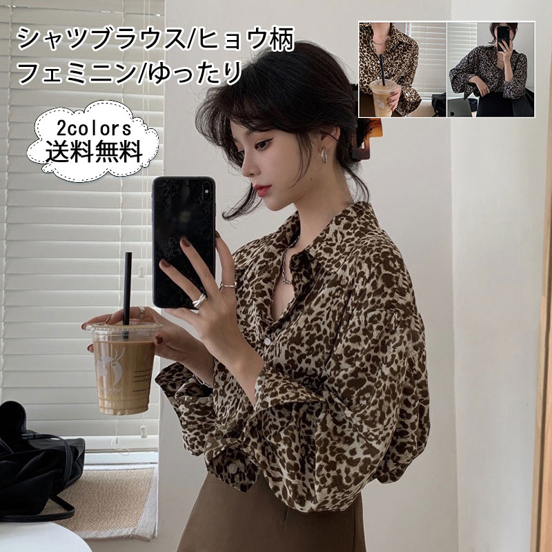 シャツブラウス ブラウス シャツ レディース 開襟シャツ ヒョウ柄 ポロネック 長袖 前開き トップス カジュアル ボタン付き フェミニン 出掛け 普段着 春秋 おしゃれ