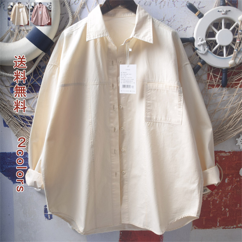 シャツ レディース ブラウス シャツブラウス トップス 長袖 ミドル丈 折り襟 ガーリー 無地 春 カジュアル 可愛い コーデ エレガント おしゃれ ファッション 体型カバー ゆったり 上品 清楚 デ