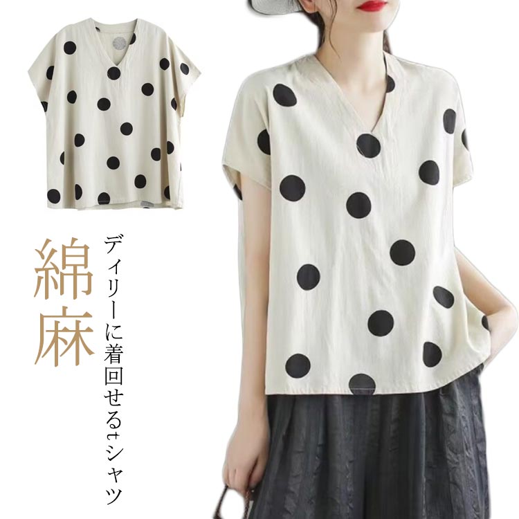 tシャツ レディース 半袖 春 夏 20代 30代 40代 ナチュラル シンプル ドット柄レディースファッション トップス シャツ ブラウス