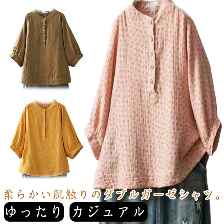 ガーゼ ブラウス レディース シャツ プルオーバー チュニック トップス ゆったり 30代 40代 50代