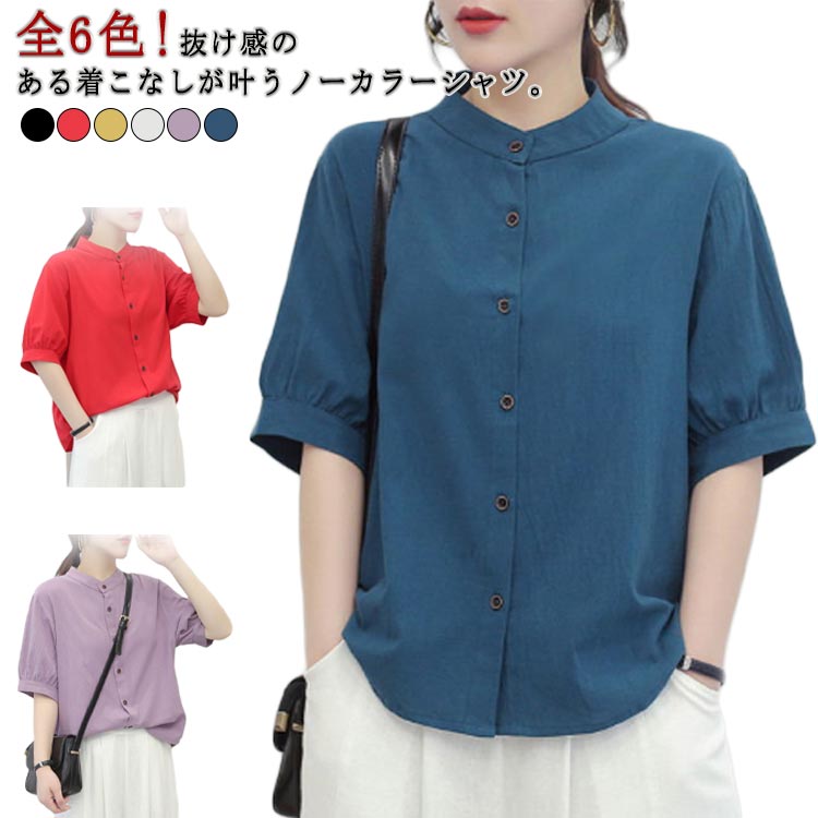 大きサイズ ブラウス レディース カジュアルシャツ 薄手 夏 ノーカラーレディースファッション トップス シャツ ブラウス