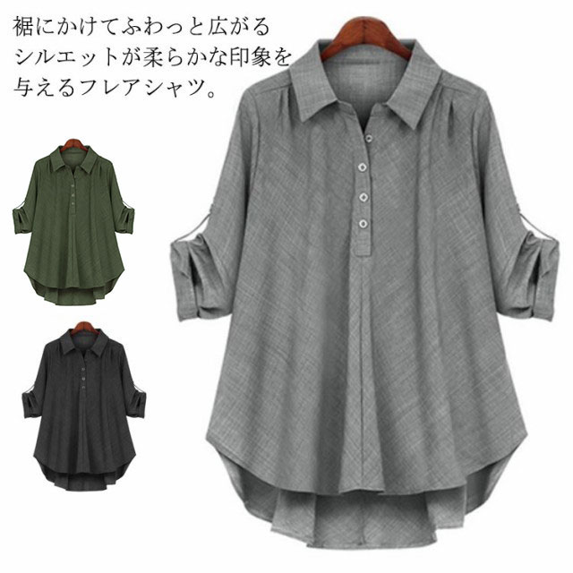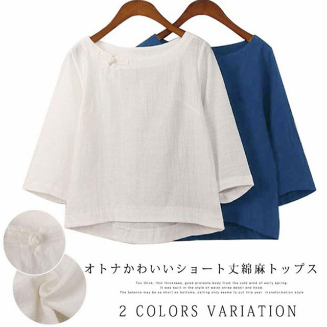 7分袖 綿麻トップス 綿麻シャツ 大人 女性 レディース 春夏 無地レディースファッション トップス シャツ ブラウス