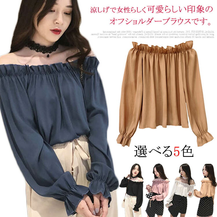 オフショルダーブラウス シフォンブラウス きれいめブラウス トップス レディース 長袖 無地 おしゃれ 春夏 キャンディースリーブ