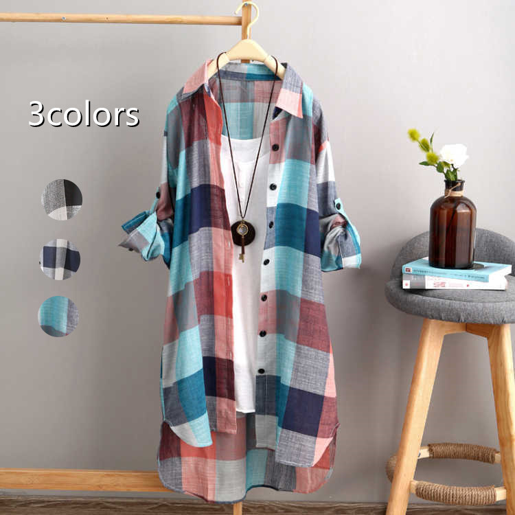 ネルシャツ シャツ ブラウス チェックシャツ チェック柄 タータンチェック レディース トップス ロングシャツ 羽織 襟付き 長袖 白 大きいサイズ ゆったり ドルマン きれいめ おしゃれ 春 夏 ド