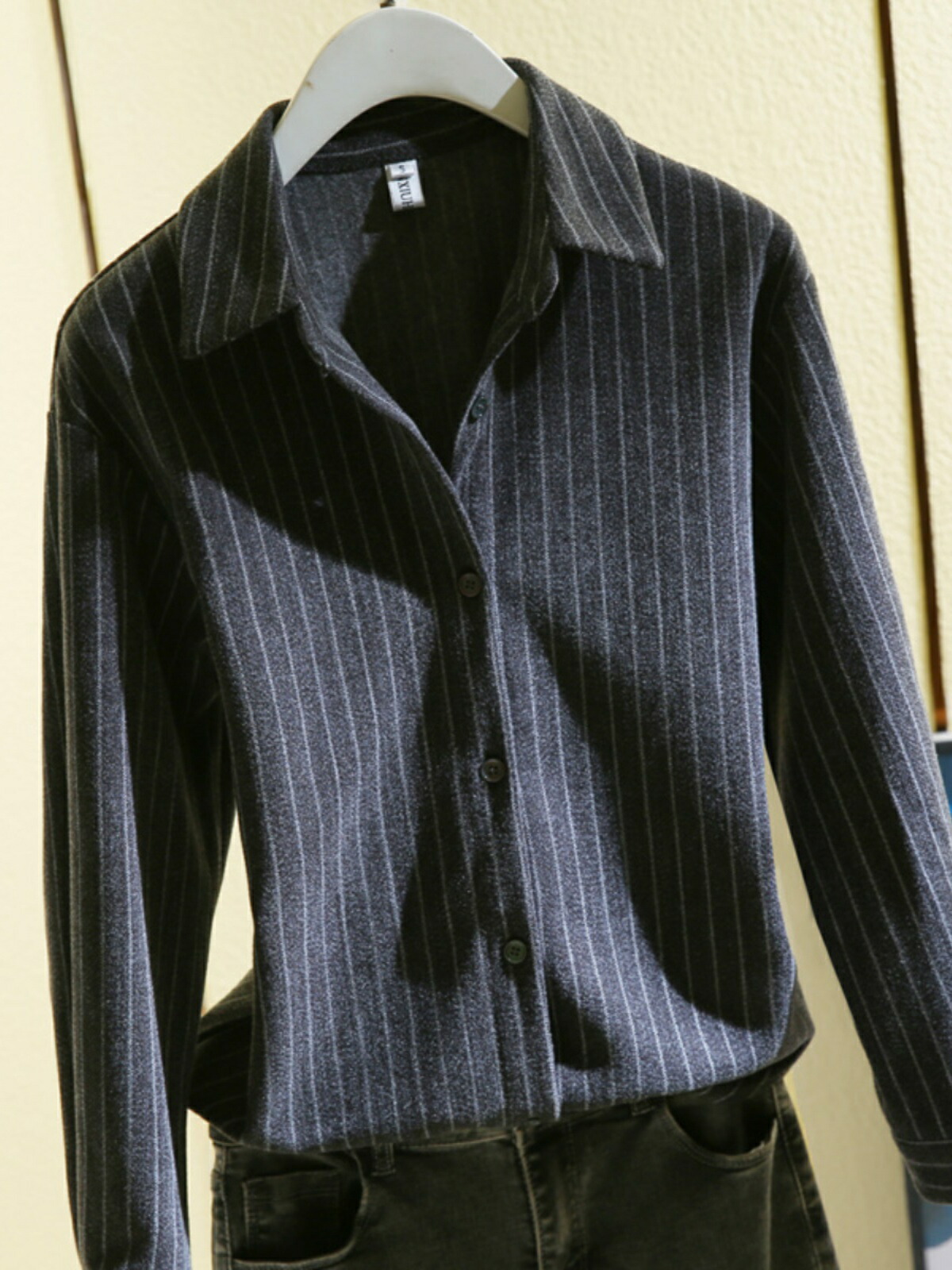シャツ ブラウス トップス ストライプ柄 リネンシャツ レディース リネン 長袖 開襟シャツ オーバーシャツ 大きいサイズ 襟付き オフィス ビジネス 通勤 着痩せ 春 秋 冬