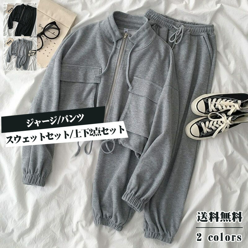 スウェットセット レディース スポーツウェア 無地 長袖 上下2点セット ジャージ パンツ カジュアル ポケット付き ゆったり 運動服 きれいめ おしゃれ