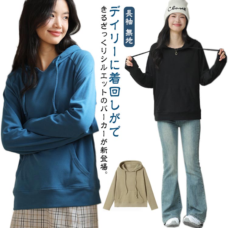 パーカー 春秋 レディース 無地 トレーナー スウェットパーカー プルオーバー フレディースファッション トップス スウェット トレーナー