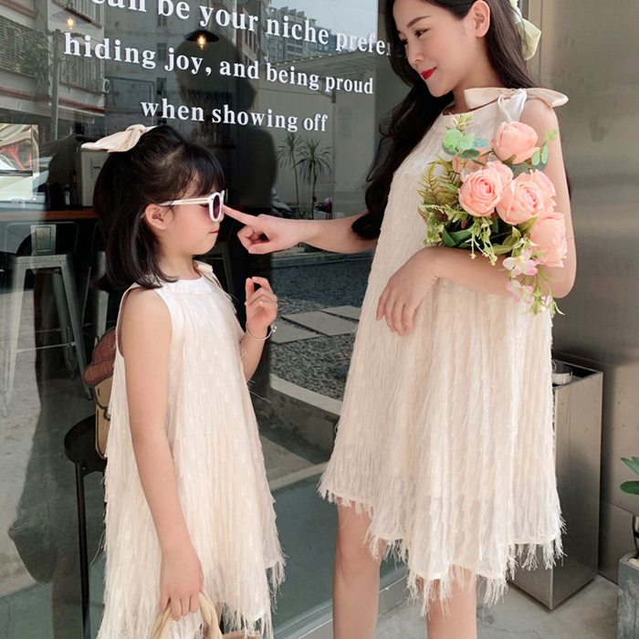 ビーチワンピース キラキラー 親子コーデ ワンピース ドレス お揃い ペアルック マッチング衣装 母 娘 ママ ガール 子供 女性 夏 ノースリーブ リゾート 海 母 娘 ママ ガール