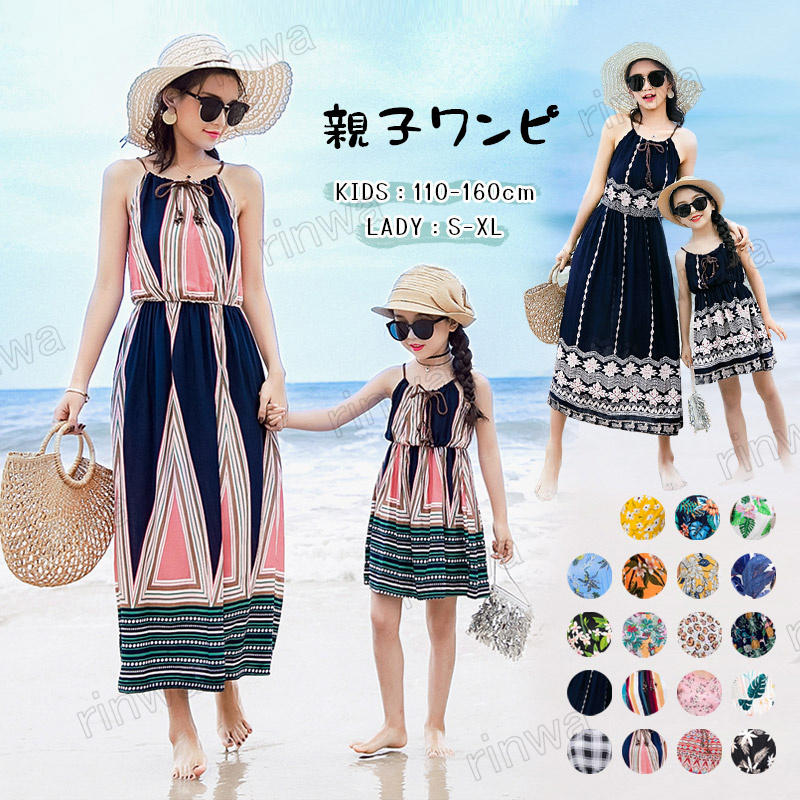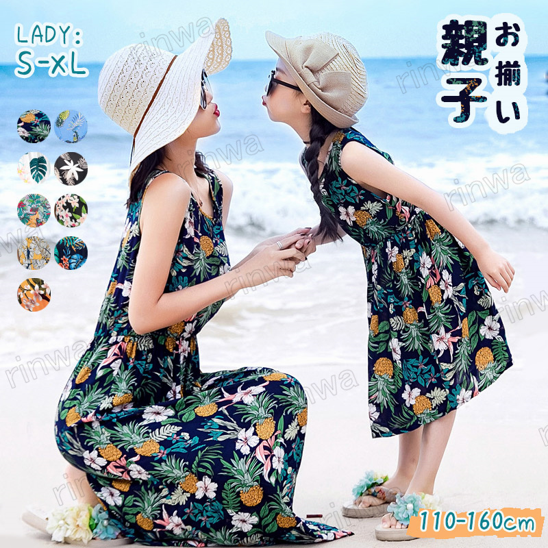 親子服 親子コーデ お揃い 親子 ワンピース ワンピース ドレス お揃い ペアルック マッチング衣装 リゾート 海 母 娘 ママ ガール 子供 女性 夏 ノースリーブ