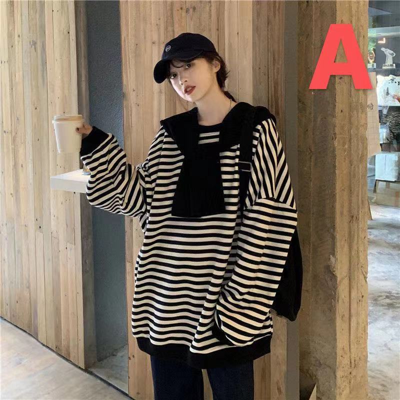 トレーナー レディース 大きいサイズ ボーダー柄 フード付き ショール付き 春秋 秋服 春服 長袖 薄手 トップス ゆったり 可愛い カジュアル LUEA278