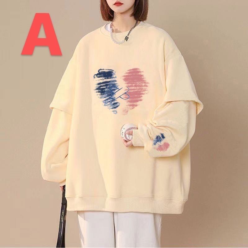 トレーナー レディース 春秋 秋服 春服 オーバーサイズ 総柄 トップス ゆったり 大きいサイズ 可愛い 丸首 長袖 カジュアル LUEA222
