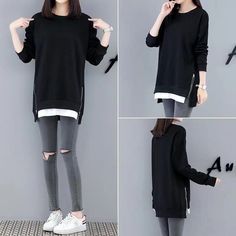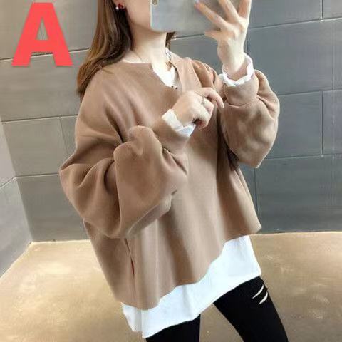 トレーナー レディース 重ね着風 裏起毛厚手 大きいサイズ シンプル 無地 冬秋 秋服 冬服 長袖 トップス ゆったり 可愛い ネック カジュアル 243