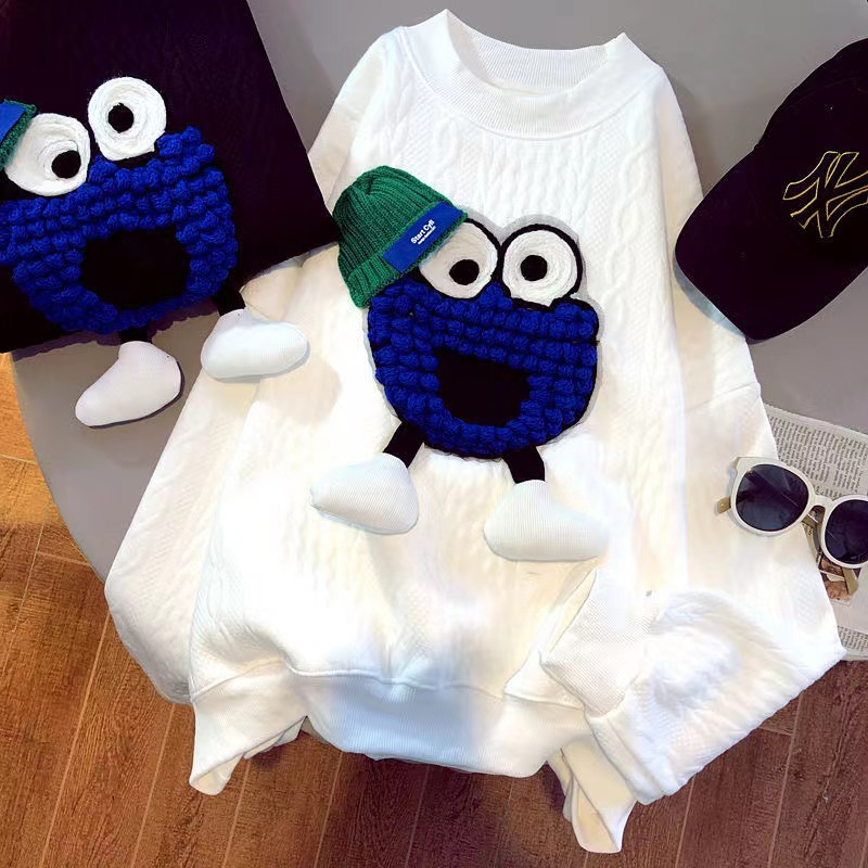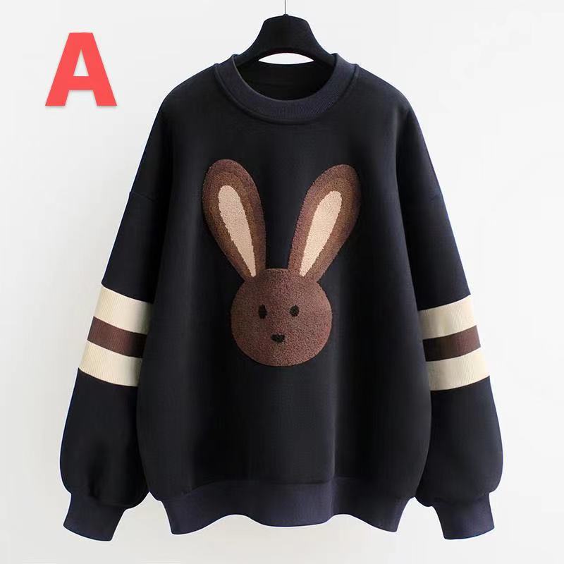 トレーナー レディース 春秋 ゆったり トップス 通勤 可愛い 長袖 丸首 ひつじ柄 ホワイト ブラック 2 393