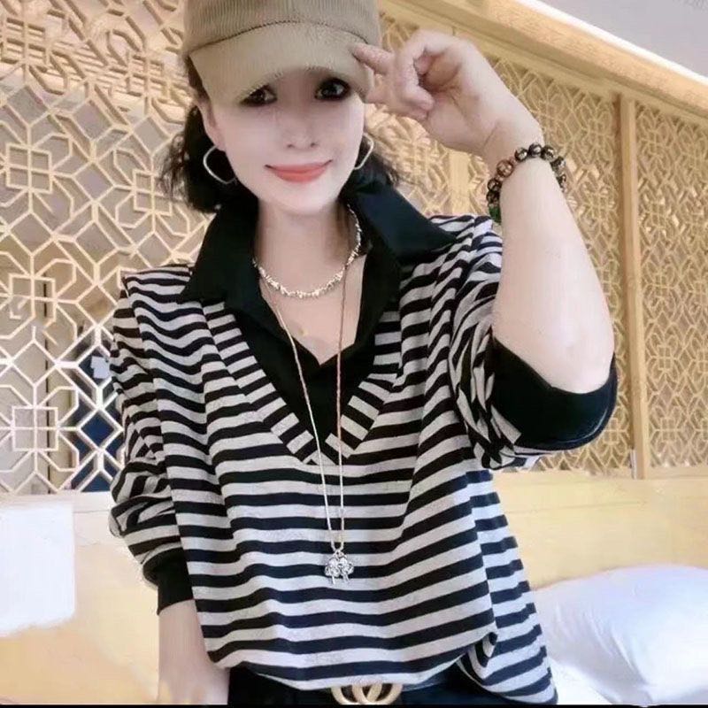 レディース カジュアル 春秋 大きいサイズ ボーダー柄 重ね着風レディースファッション トップス スウェット トレーナー