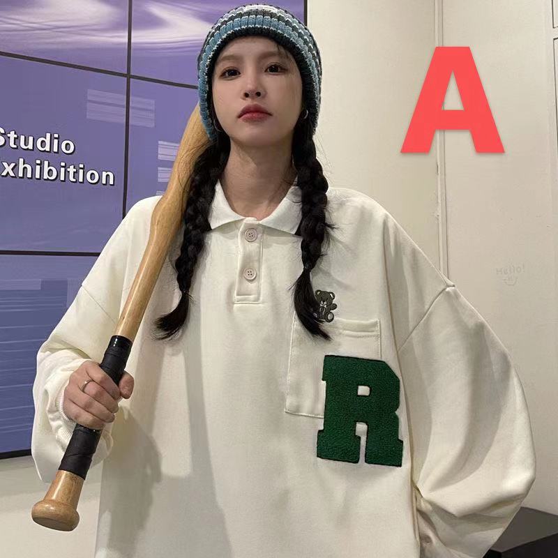 レディース 春秋 トレーナー トップス ゆったり 学園風 襟付き 可愛い 長袖 大きいサイズ 330