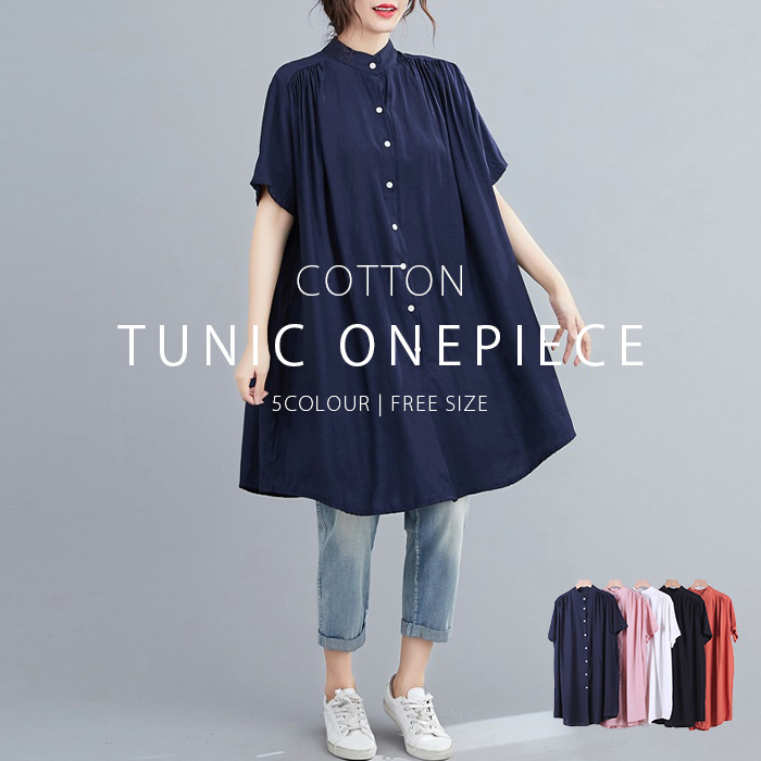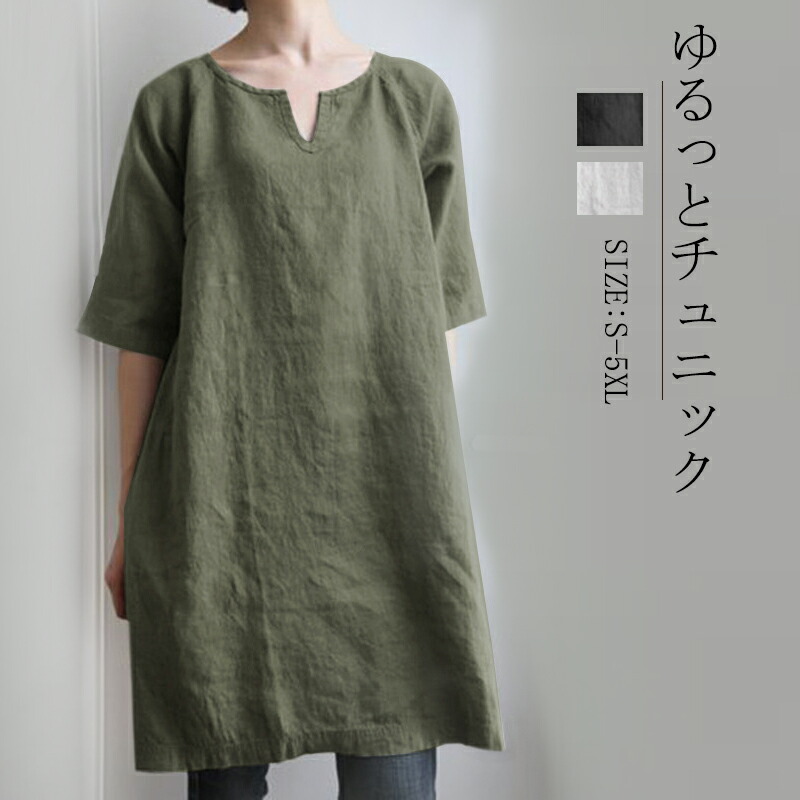 薄手で涼しいチュニックワンピース チュニック 綿 白シャツ 体型カバー カジュアルレディースファッション チュニック