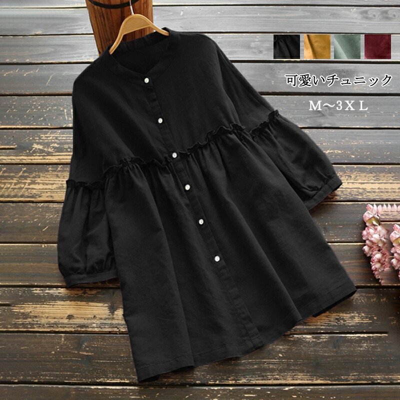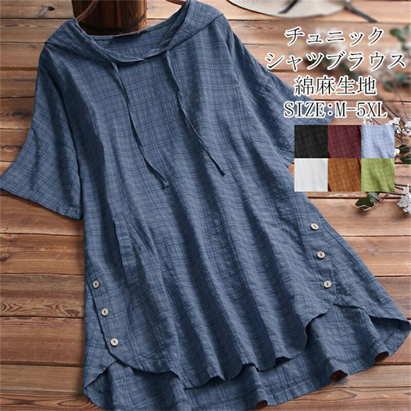 チュニック レディース 半袖 5分袖 春 夏 秋 おしゃれ ゆったり ブラウス 40代 50代 60代 シニア トップス シャツ 体型カバー 大きいサイズ 5236