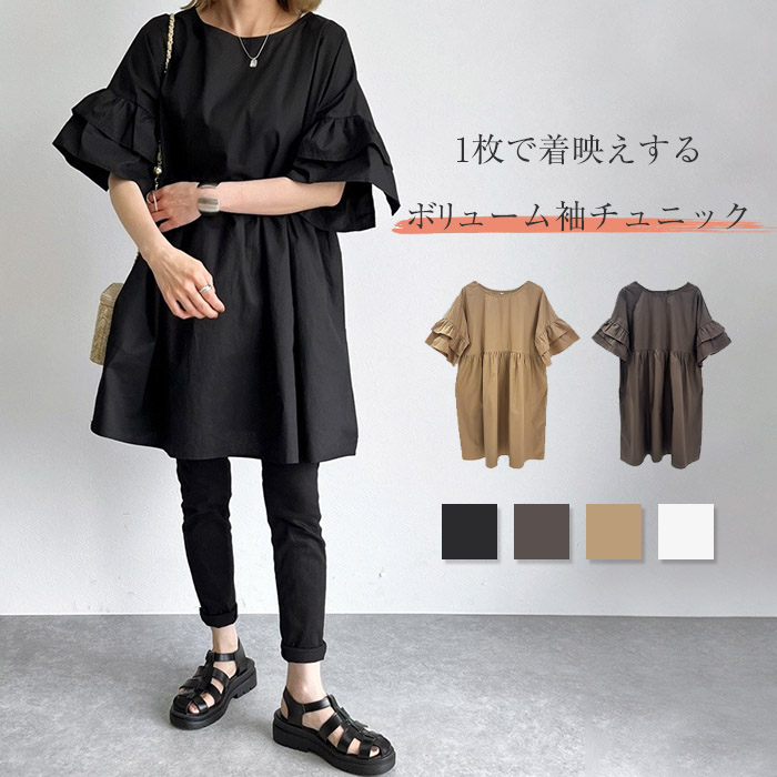 ボリューム袖やゆったりシルエットが旬のスタイリングが叶う♪かわいいティアードチュニック♪レディースファッション チュニック
