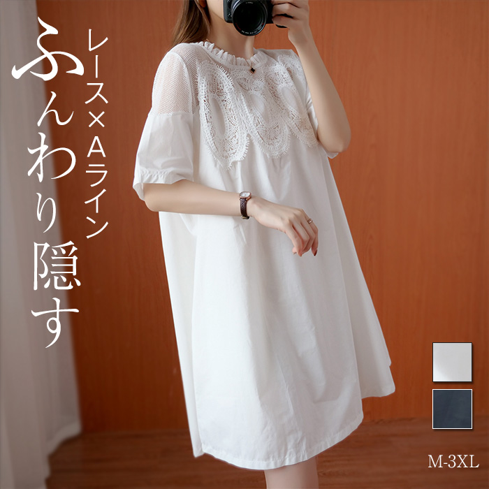 レディース チュニック 半袖 丸首 薄手 透け感 通気性 夏ワンピ シースルー ハーフ丈 膝丈ワンピース 大人 清楚系 きれいめ 大人可愛い 二の腕カバー 大きいサイズ