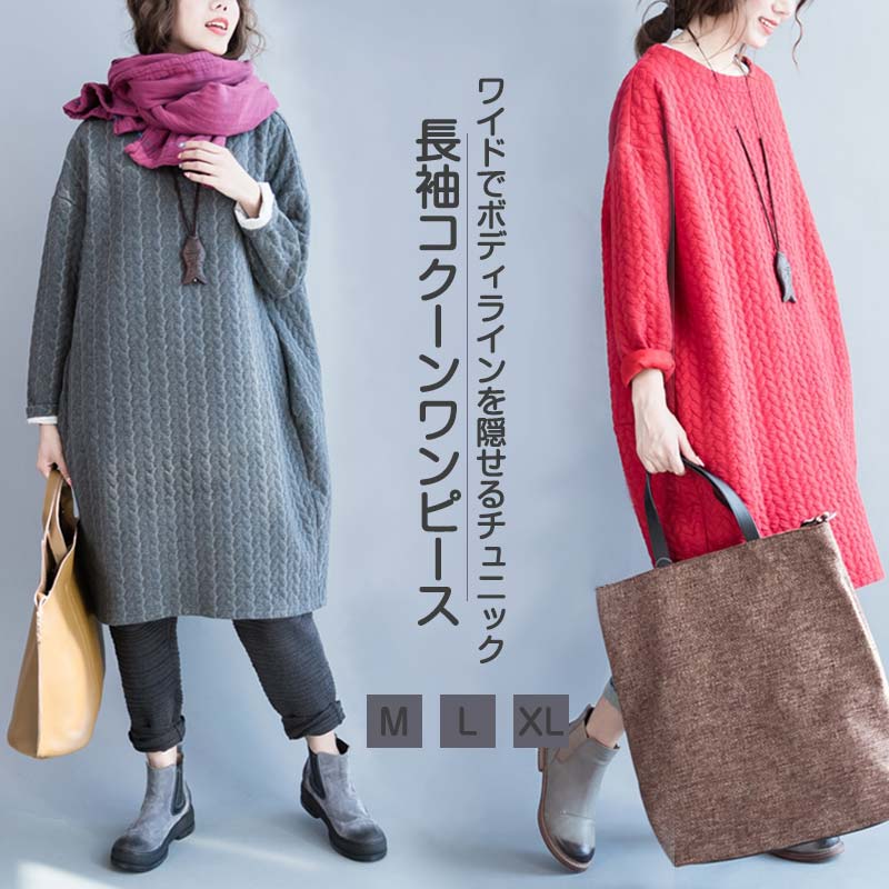 チュニックにしてもそのままに着ても似合うコクーンワンピース コクーンワンピース ワンピ ワンピース 長袖ワンピ バールンワンピース 着回し 抜け感 大人 かわいい おしゃれ