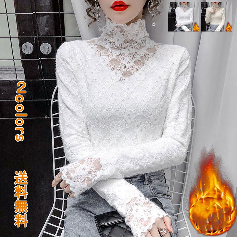 ブラウス レース ボア付き 裏ボア レディース トップス タートルネック ハイネック タイト トップス レース カットソー レディース ハイネック 長袖tシャツ プルオーバー タートルネック tシャツ