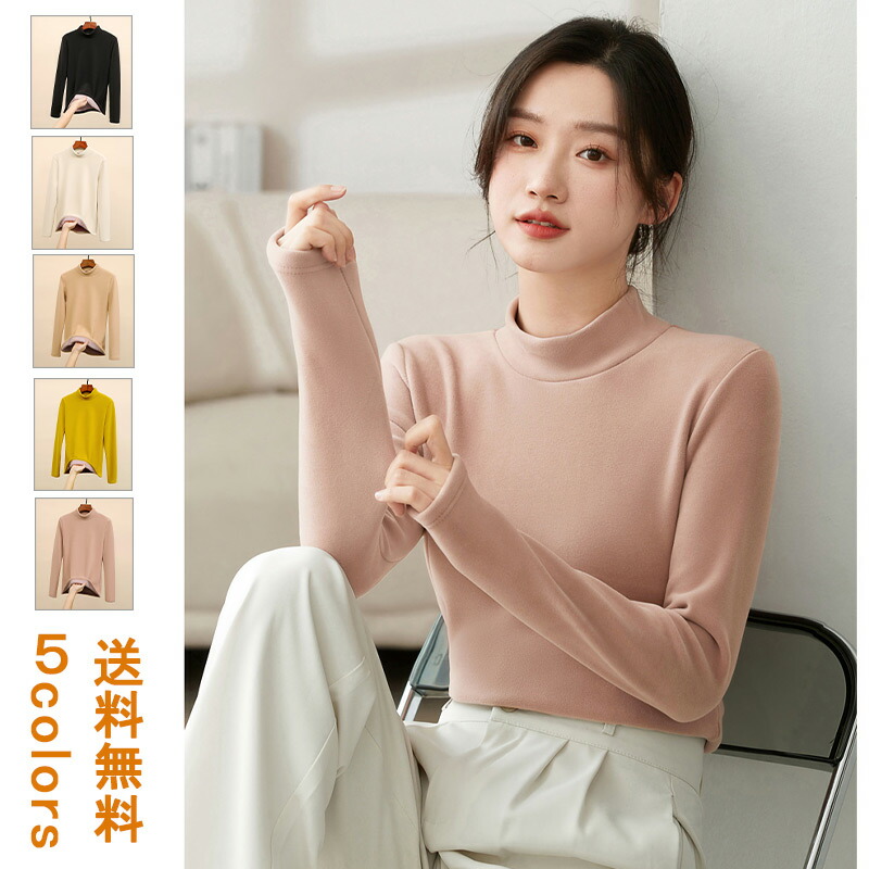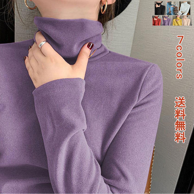 ヒットテーク タートルネック ハイネック レディース トップス ボア付き 長袖 トップス カジュアル 無地 ベーシック タートルネック インナー 裏起毛 裏ボアオフィス 春 秋 冬 カットソー ストレ