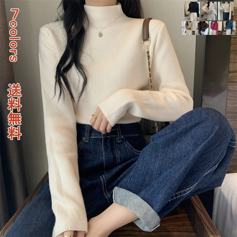 ニットセーター リブプチハイネック プチタートルネック トップス セーター リブ プチハイネック 長袖 伸縮性 暖か ニット トップス レディース 無地 裏ボア ボア付き 通勤 大きいサイズ ルームウ