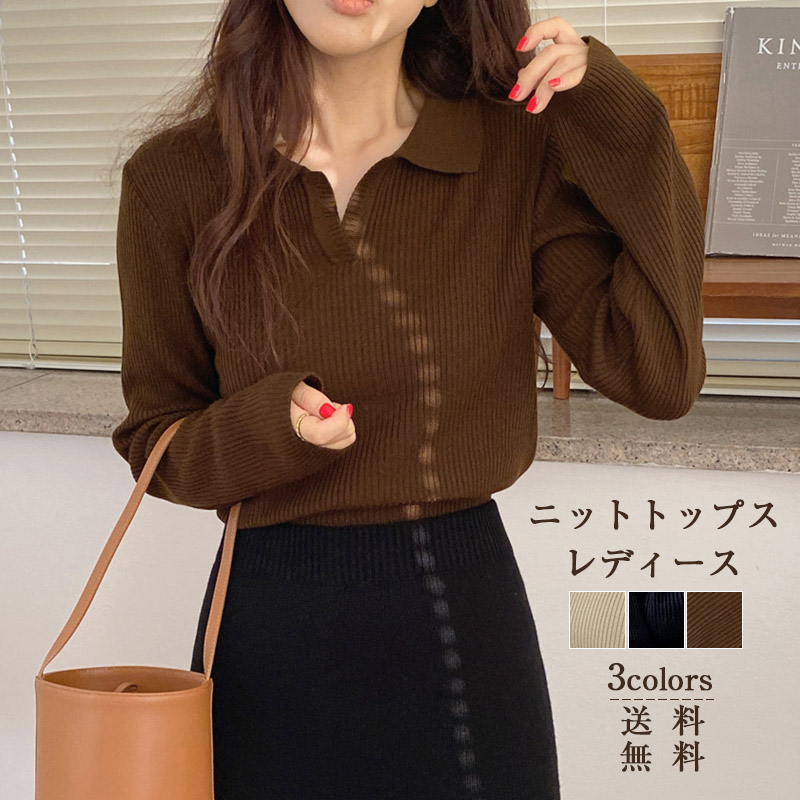 襟つきニットトップスシャツポロ襟ニットセーター レディースレディースファッション トップス ニット セーター セーター