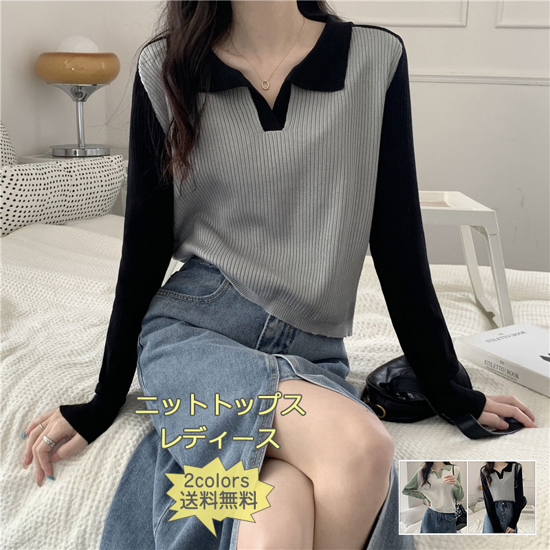 ニット レディース トップス Vネック ポロシャツポロ襟着回し キレイめ きれいめ 長袖 細身 大人 セーター 襟 長袖ニット 長袖ニットプルオーバー フリーサイズ 長袖ニットセーター オシャレ シン