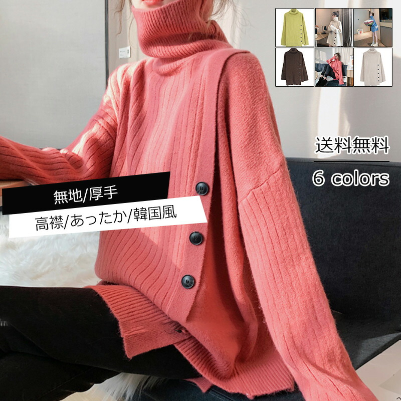 ニットレディース セーター インナー ニットセーター 無地 ハイネック 長袖 厚手 トップス カジュアル ボタン付き 防寒 あったか 着痩せ 秋冬 きれい おしゃれ