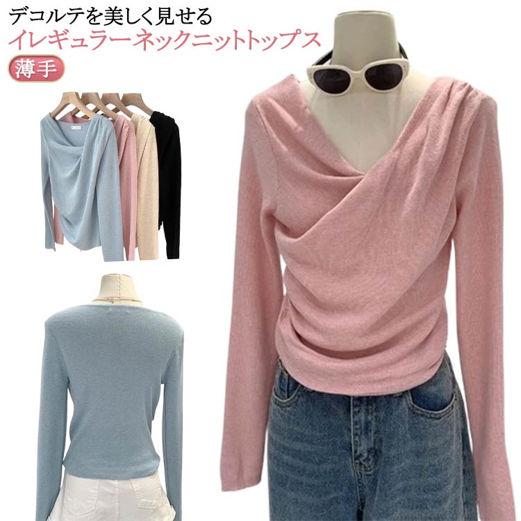 デコルテが綺麗に見えて上品に着れる 体型カバー 着やせ ニット トップス セーター 秋物 細見せ 上品 高見え タイト スリム ネックラインが美しい