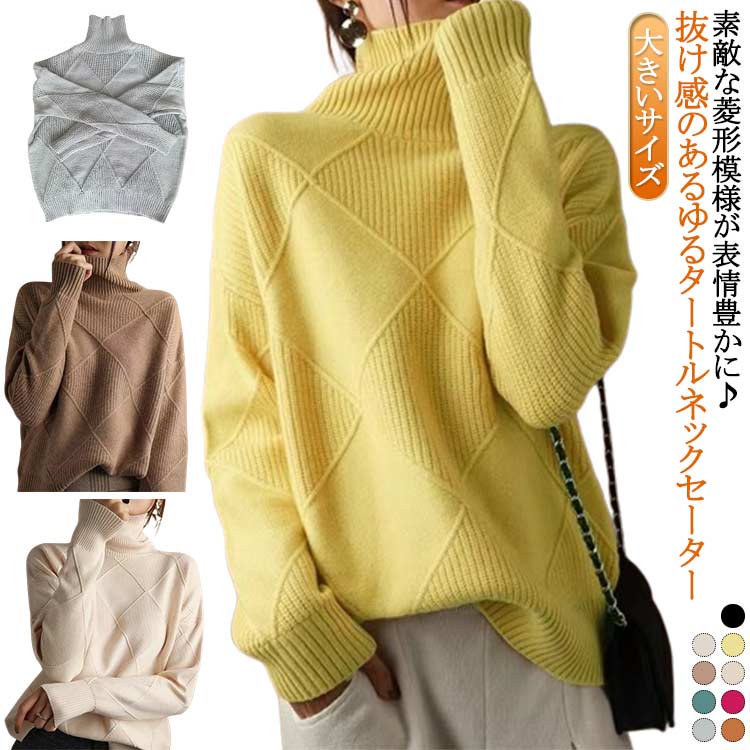 タートルネック ニットセーター 長袖 ニットトップス ビッグシルエット 大きいサイズ ローゲージ ハイゲージ 表情豊か おしゃれ 韓国ファッション ふんわり 暖かい