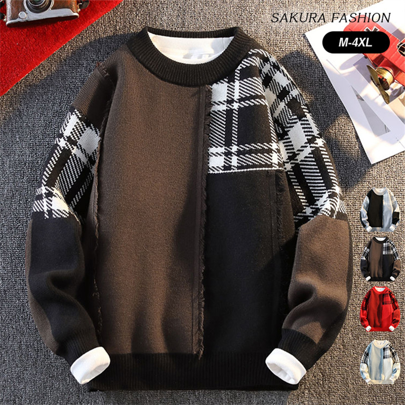 ニット レディース メンズ ユニセックス トップス セーター プルオーバー クルーネック 長袖 長そで 大きいサイズ ゆったり 秋 冬 レイヤード 異素材ドッキングニット