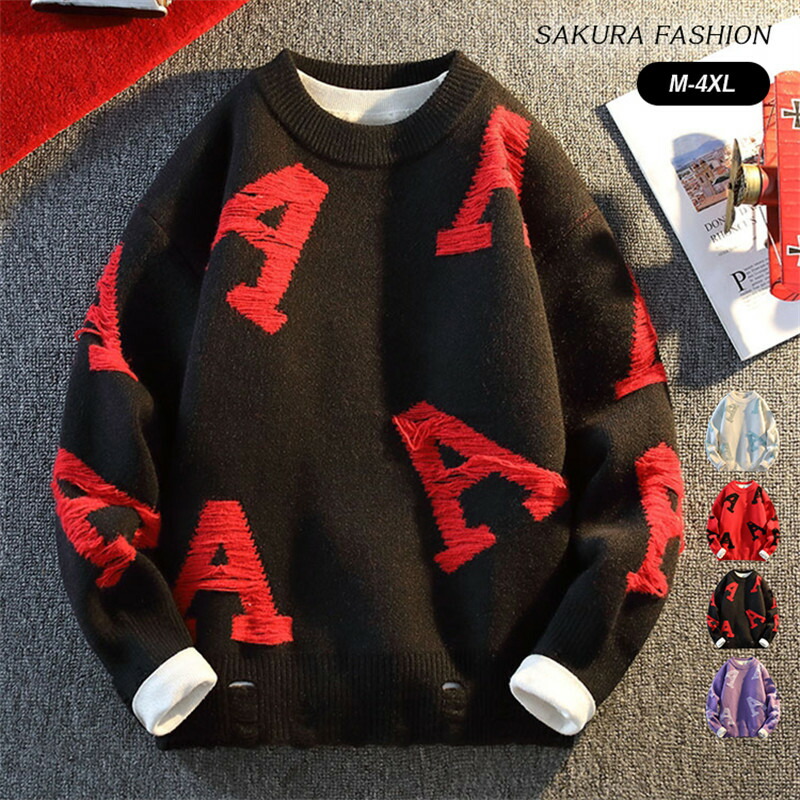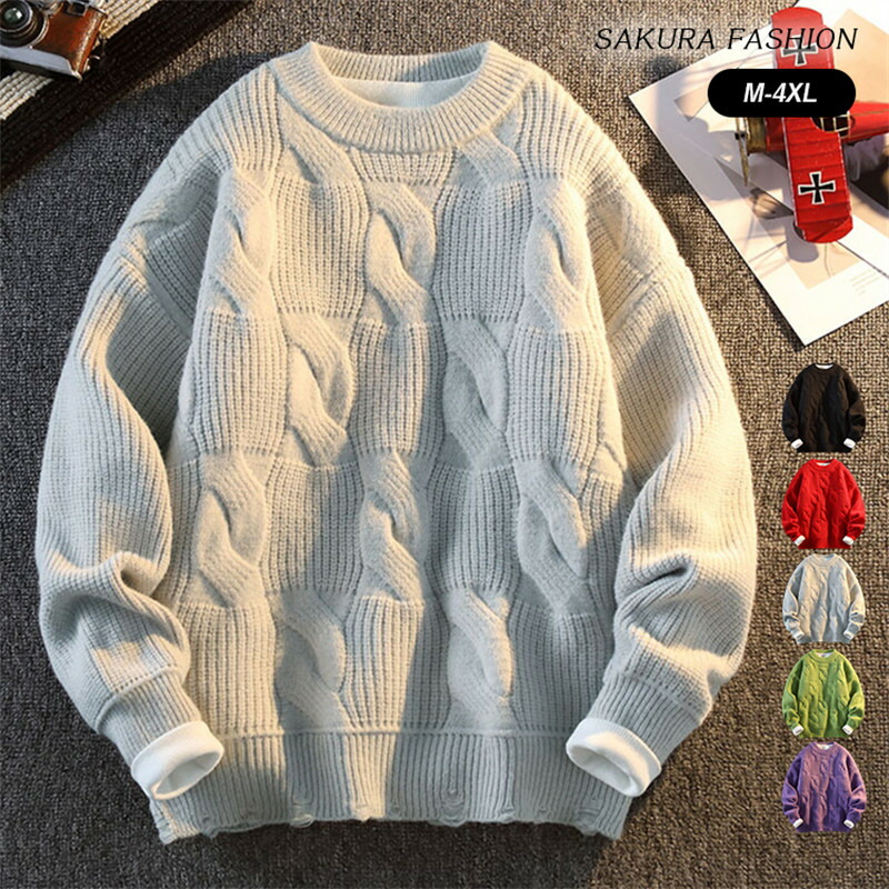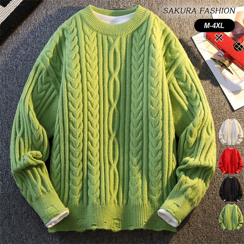 ニット レディース メンズ ユニセックス トップス セーター ニットウエア ニットウェア 長袖 長そで 丸首 ケーブル編み 大きいサイズ ゆったり 秋 ダメージニット プルオーバー