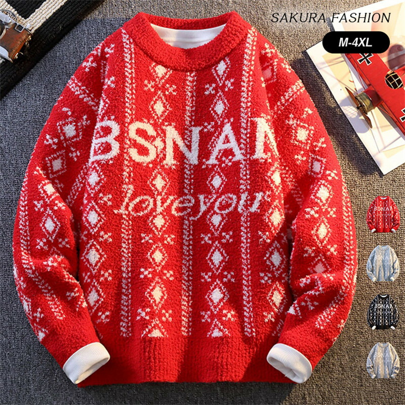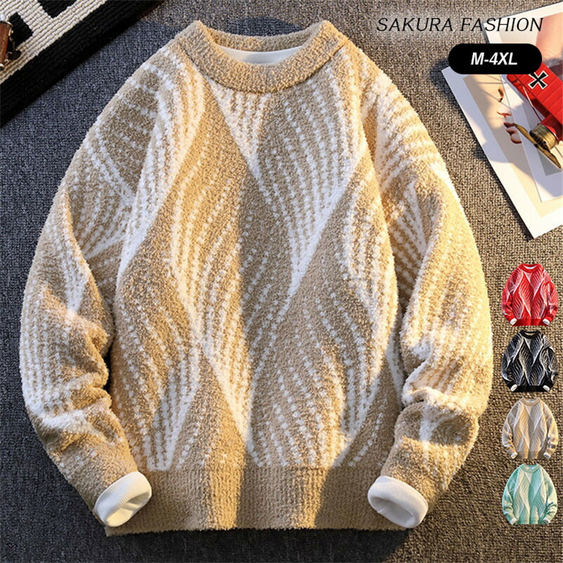 ニット レディース メンズ ユニセックス ニュアンス柄 ニットトップス ニットウェア セーター プルオーバー 長袖 長そで 丸首 クルーネック 手洗い チクチクしない 大きいサイズ ゆったり 冬 ニュ